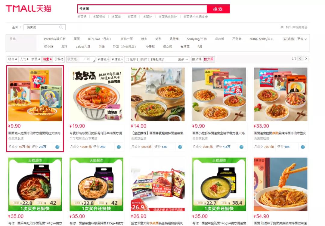 近日,畫麵天貓旗艦店經過天貓運營僅用短短15天內銷量近達20萬單,直衝方便麵/拉麵/麵皮品類第一。