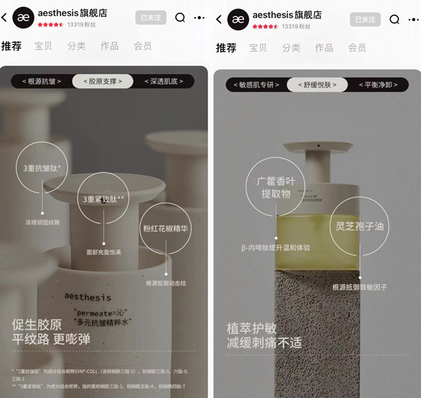 作為一個感官功能護理品牌,aesthesis的誕生源於“對感官的感受”,在意消費者的“五感”體ti驗yan,賦fu予yu了le每mei款kuan產chan品pin獨du特te的de感gan官guan功gong能neng,同tong時shi,回hui歸gui肌ji膚fu問wen題ti的de本ben質zhi幹gan預yu,強qiang化hua消xiao費fei者zhe的de肌ji膚fu自zi我wo覺jiao知zhi,滿man足zu其qi極ji簡jian高gao效xiao的de護hu膚fu需xu求qiu。從cong獨du特te的de品pin牌pai理li念nian到dao產chan品pin研yan發fa,aesthesis都在試圖打破國產護膚品牌同質化的現狀,細分切入護膚市場。