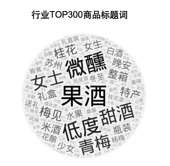 果酒的微醺特性使得其在女生群體中廣受歡迎。在TOP30的商品中,不少商品的標題中帶有“女士”、“少女”、“女生”、“伴手禮”、“送禮”等字樣,建議產品場景設置可以從女性群體出發,尋找夏日送禮相似的細分場景。